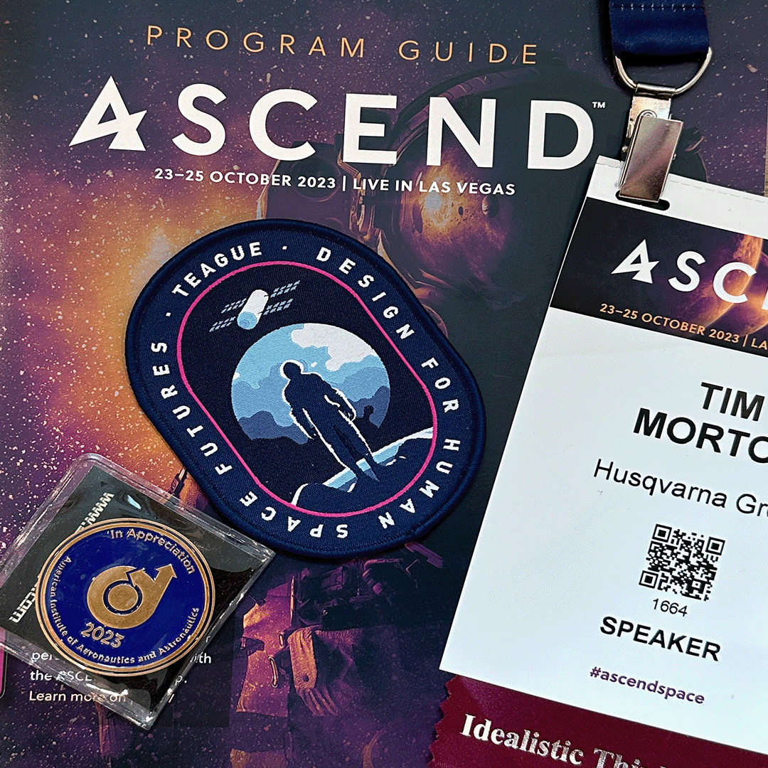 Invited by Teague as one of three panelist at Ascend 2023 Conference help by AIAA discussing the application of human centered design, creativity and design thinking to create great user experiences for the emerging space economy.